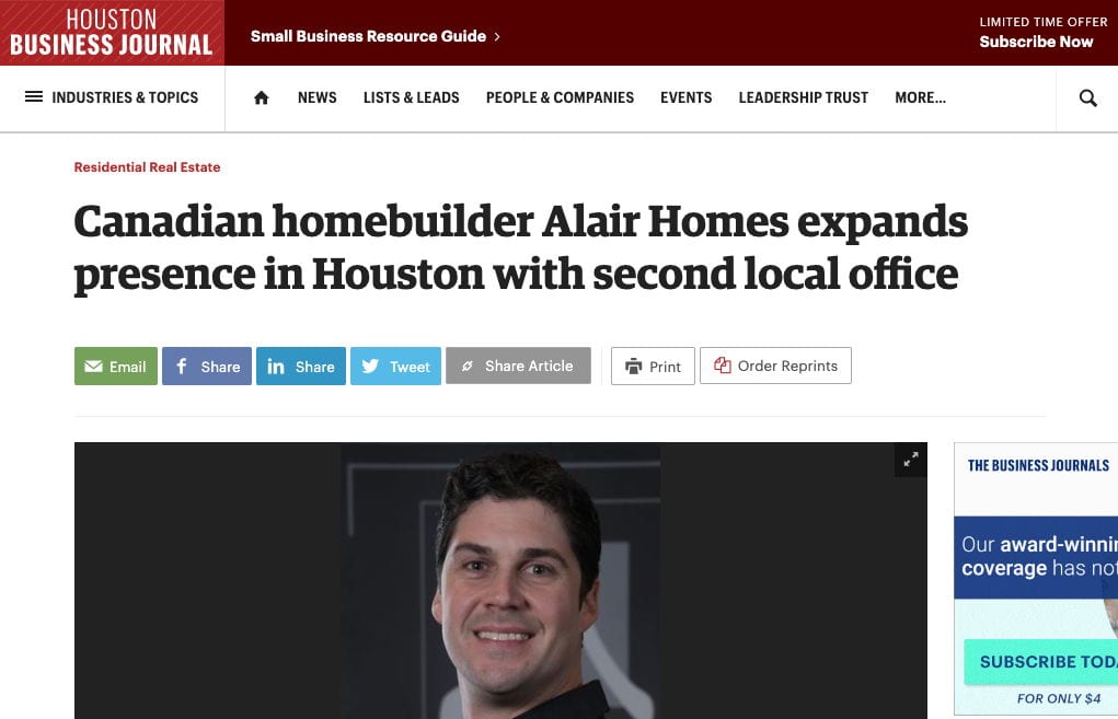 Canadian homebuilder Alair Homes expands presence in Houston with second local office